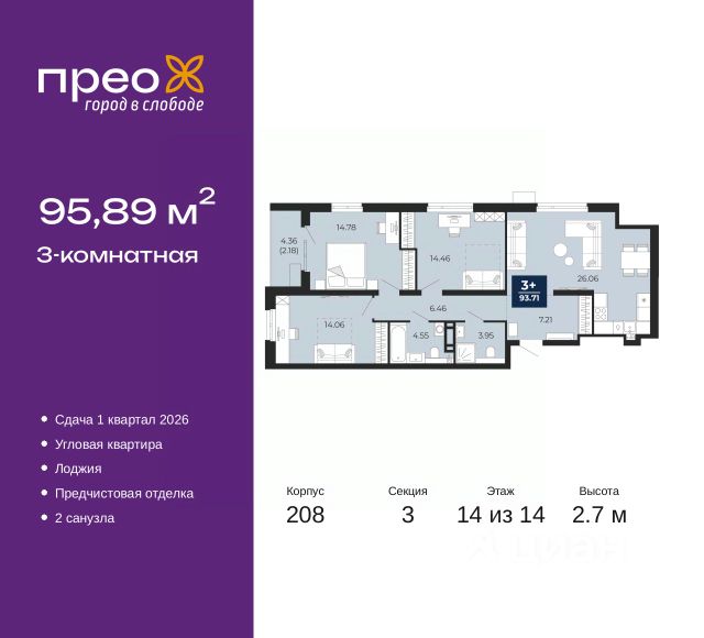 🔷 Средняя цена за м2:141,2 тыс. ₽/м²