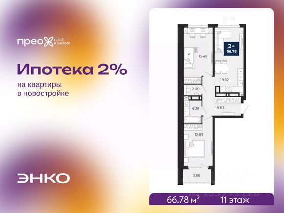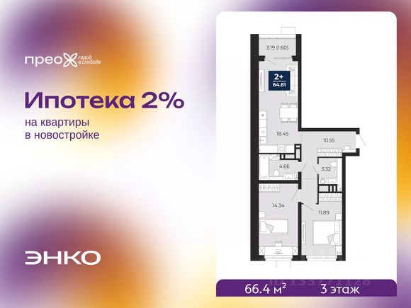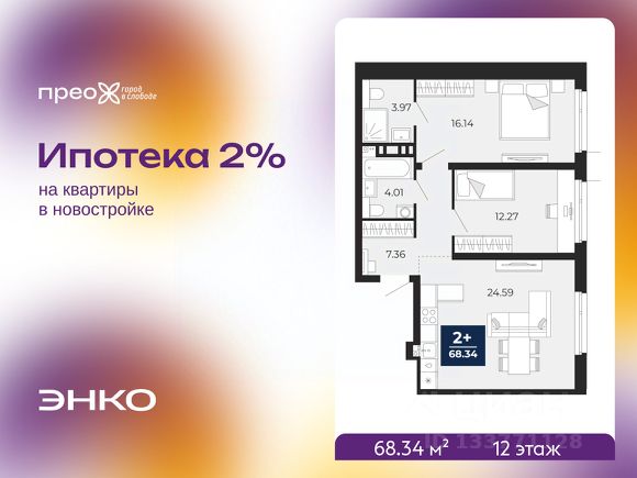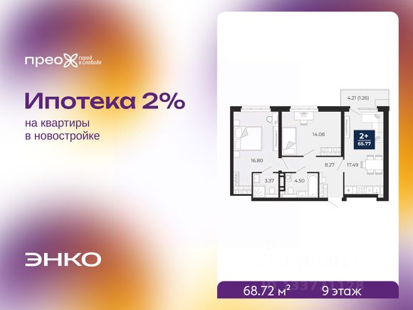 Продается 2-комн. квартира с предчистовой отделкой в ЖК "Прео" на 13 этаже. Общая площадь: 68.02 кв.м., жилая: 29.46 кв.м., площадь просторной кухни-столовой: 23.79 кв.м. Угловая квартира, очень светлая, естественная вентиляция при открытии окон. В квартире один совмещенный и один раздельный санузел. Высота потолков 2.7 м.