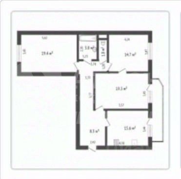 Квартира на высоком первом этаже, распашонка, окна выходят на две стороны, площадь 55,4 кв.м. + лоджия.