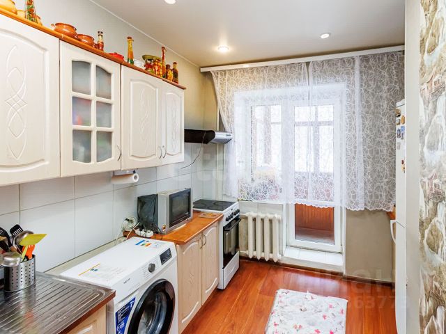 Двухкомнатная квартира площадью 52 кв.м на третьем этаже. Жилая площадь 29,1 кв.м. Кухня площадью 9 кв.м. Изолированные комнаты правильной формы. Большая лоджия (6 м) с двумя входами из кухни и комнаты. Окна выходят на улицу, на солнечную сторону, поэтому в квартире целый день много естественного солнечного света. высота потолков 2,7 м. Санузел раздельный. Коридор 6м.