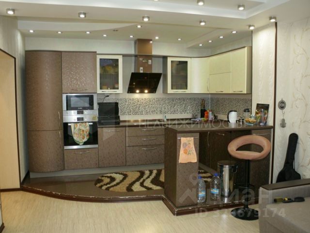 Кухня большая, прямоугольной формы, остается кухонный гарнитур, укомплектованный, варочной плитой, духовым шкафом, посудомоечной машинкой. Так же остается холодильник. Установлена система водоочистки.