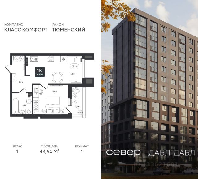 Продаётся квартира площадью 48.9 м2 в жилом комплексе "Дабл-Дабл". Квартира находится на 1 этаже, жилая площадь квартиры 11.87 м2, площадь просторной кухни — 18.17 м2. Среди особенностей планировки — изолированные комнаты с окнами на одну сторону, 1 совмещённый санузел. Срок сдачи — II кв. 2028 Жилой комплекс "Дабл-Дабл" — это: - проект комфорт-класса на Московском тракте - дома высотой 15 этажей - квартиры от 1-комнатных до 2-уровневых Окружение На границе жилого комплекса — живописный лес. Достаточно открыть окна, чтобы впустить в комнаты ароматы зелени, прохладу и чистый воздух. Благоустройство Юные жители оценят игровые площадки и воркаут-зоны. Любителям неспешных прогулок понравится 2-уровневый променад с панорамным видом и навесами. Лобби Помещения встречают дизайнерскими интерьерами с уютными лаунж-зонами, где удобно подождать курьера или просто сделать паузу перед возвращением домой. Колясочные Возвращайтесь налегке после прогулки с малышом — оставить коляску можно в специальном помещении на первом этаже. Кладовые Благодаря индивидуальным помещениям на техническом этаже сезонные и габаритные вещи будут на своём месте. 2-уровневые квартиры Просторная гостиная и кухня располагаются на первом этаже, спальня и кабинет — на втором. Почувствуйте, как жизнь выходит на новый уровень комфорта и приватности. Панорамное остекление Окна в пол наполняют комнаты светом и стирают границы между домом и природой. Встречайте рассветы или наслаждайтесь огнями вечернего города. Отделка Ровные стены, подготовленные полы и проведённые коммуникации — мы взяли на себя самые грязные и трудоёмкие этапы ремонта. Квартира станет чистым холстом, где легко создать интерьер в любом стиле.