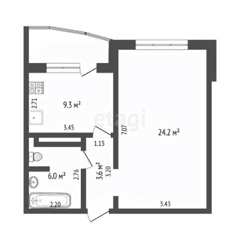 Идеальная гармоничная планировка - одна из лучших в ЖК, включает в себя: комфортную кухню-гостиную столовую 20 кв.м. с выходом на витражную лоджию 5 кв.м., большую спальню 13,1 кв.м., просторный сан.узел - более 4,3 кв.м.