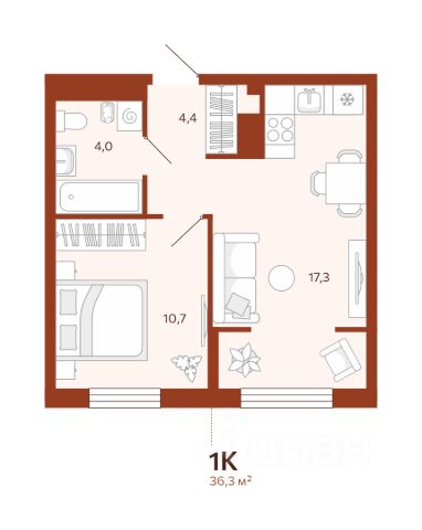 Квартира находится в ЖК "Счастье". Это современный малоэтажный жилой комплекс в окружении березовой рощи. До центра города 10 минут на автомобиле. В 5 минутах езды —роща Декабристов, памятник природы регионального значения Дома расположены по адресу: Тюменская область, г. Ялуторовск, ул. Свободы, 240 и 242. Дома ГП-1 и ГП-2 - сданы. Срок сдачи ГП-3, ГП-4 - 3 квартал 2025-2026 гг. Дворы безопасны и выполнены в концепции Двор без машин- разведены потоки движения транспорта и пешеходов, а парковки удалены от детских площадок. Дворы зонированы по функциям и возрасту жителей, использованы тактильно приятные материалы. Там будет интересно и малышам, и подросткам. Для взрослых спроектированы спортивные зоны и места тихого отдыха. Дома ЖК "Счастье" построены из силикатного блока толщиной 250 мм с применением эффективного утеплителя. Декоративная фасадная штукатурка применяется для облицовки дома способом "мокрый фасад". Квартиры сдаются в улучшенной отделке. Установлены счетчики воды и электроэнергии. Входная дверь - стальная с утеплением и шумоизоляцией. Выполнена цементно-песчаная полусухая стяжка пола, горизонтальная разводка отопления. Выровнены стены и потолки, установлены радиаторы и пластиковые окна. Характеристики квартиры: этаж 1 количество комнат - 1 номер помещения - 61 площадь квартиры - 21,52 кв.м высота потолка - 2,75 м Планировка квартиры отличается продуманностью. Пространство организовано с учетом потребностей каждого члена семьи. В квартире созданы отдельные зоны для отдыха и работы, что способствует рациональному использованию площади. Спальня оформлена для обеспечения комфортного отдыха, а санузел спроектирован с учетом всех необходимых удобств, включая место для хранения хозяйственных принадлежностей. Все зоны оптимально освещены и имеют стандартные размеры для размещения мебели и сантехники. Кухня подойдет не только для приготовления пищи, но и для приема гостей. Застройщик предлагает несколько вариантов ремонта: чистовая отделка, ремонт с кухней, ремонт с мебелью и техникой. Данную услугу можно включить в ежемесячный платеж по ипотеке. Купить квартиру на 1 этаже в Ялуторовске.