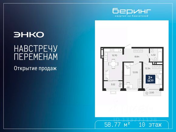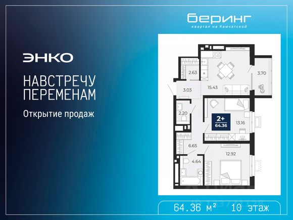 Продается двухкомнатная квартира с предчистовой отделкой в ЖК "Беринг" на 10 этаже. Общая площадь: 62.63 кв.м., жилая: 25.12 кв.м., площадь просторной кухни-столовой: 18.31 кв.м. Комнаты изолированные, все окна выходят на одну сторону. В квартире одна лоджия, два совмещенных санузла. Высота потолков 2.72 м. Дом монолитный, многоподъездный, переменной этажности, от 17 до 24 этажей. Квартира находится в 6-й секции высотой 24 этажа в корпусе ГП-75. На этаже 6 квартир. В подъезде 2 пассажирских и 1 грузовой лифт. Окончание строительства - 4 квартал 2027 года. Оформление сделки по договору долевого участия. Подобно знаменитому исследователю, мы чувствуем себя первооткрывателями этой локации. Хотим показать новую суть места, сформировать для вас жизненный опыт, которого ещё не было. Беринг — район зелёного цвета. Беринг — район, который откроется вам с другой стороны. Впечатлит новым уровнем комфорта и качеством жизни. Беринг — открытие на карте города. Первый квартал расположен в районе Тура, в границах улиц: Камчатская Западносибирская Энтузиастов. Вокруг уже есть всё для того, чтобы ежедневная рутина была лишь частью жизни и не доставляла дискомфорта. Школы и детские сады, магазины и аптеки, поликлиника, места для семейного отдыха, пеших и велопрогулок, и даже рыбалки. Масштабное озеленение дворов — визитная карточка ЭНКО и ваш оазис спокойствия, чтобы отвлечься от повседневности. Раскидистые деревья, кустарники, травы и цветы — осталось остановиться, вдохнуть и расслабиться, глядя на эту природную красоту. Стилистика подъездов продолжает концепцию Беринга, вдохновлённого Камчаткой: сдержанный, но при этом впечатляющий дизайн соседствует с удобством и функциональностью.