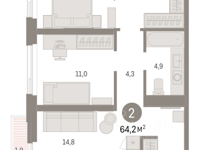 Однокомнатная студия с предчистовой отделкой в ЖК "Зарека" на 10 этаже. Общая площадь: 32.72 кв.м., площадь гостиной 19.6 кв.м., из которых 5 кв.м. выделено под кухонную зону. Все окна выходят на одну сторону. В квартире один балкон, один совмещенный санузел. Высота потолков 2.7 м. Квартира находится в корпусе 5-1. Дом монолитный, одноподъездный, высотой 25 этажей. На этаже 12 квартир. В подъезде 2 пассажирских и 1 грузовой лифт. Окончание строительства - 1 квартал 2027 года. Оформление сделки по договору долевого участия. Студия в жилом районе "Зарека". Особенности планировки: балкон, гардеробная, предчистовая отделка. квартиры в нашей базе: ЗРК05.1-Ж1.10.4. Проект На планировочную структуру "Зареки" повлияла близость к автомобильному мосту Челюскинцев. Мы расположили жилые здания так, чтобы они постепенно удалялись от проезжей части. Приём напоминает лесенку: чем сильнее мост возвышается над участком застройки, тем дальше по отношению к нему стоят дома. Этот ступенчатый сдвиг позволил нам сформировать буфер между кварталами и оживлённой магистралью. Мы намерены высадить здесь высокие деревья и создать дополнительную защиту от дорожных шума и пыли. В границах нашего участка мы намерены разместить школу и два встроенных детских сада на 135 и 150 мест. Общественные пространства С севера на юг территорию будет пронизывать пешеходный бульвар. Мы мыслим это общественное пространство как главный центр притяжения. На нём будут сосредоточены основные детские игровые и спортивные зоны, места для встреч и спокойного отдыха. Он также сыграет роль мостика, ведущего к другим нашим проектам — "Европейскому кварталу" и "Дому у озера". Одна из базовых идей мастер-плана касается береговой линии. Сегодня озеленение этой территории носит стихииныи характер, а прямому доступу к Туре препятствует дамба. Мы хотим благоустроить пространства у воды и открыть их для людей. Архитекторы спроектировали систему многоярусных троп и спусков к реке, смотровые площадки и места для активного отдыха и пикников. #zMDVVI