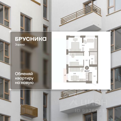 2-комн. квартира с предчистовой отделкой в ЖК "Зарека" на 10 этаже. Общая площадь: 64.19 кв.м., жилая: 31.8 кв.м., площадь просторной кухни-гостиной: 14.8 кв.м. Квартира угловая, идеально подойдет любителям тишины и панорамных видов. В квартире один балкон, один совмещенный санузел. Высота потолков 2.7 м. Дом монолитный, двухподъездный, высотой 25 этажей. Квартира находится в 1-й секции в корпусе 5-1. На этаже 12 квартир. В подъезде 2 пассажирских и 1 грузовой лифт. Окончание строительства - 1 квартал 2027 года. Оформление сделки по договору долевого участия. Квартира с кухней-гостиной и двумя спальнями в жилом районе "Зарека". Особенности планировки: балкон, предчистовая отделка. квартиры в нашей базе: ЗРК05.1-Ж1.10.8. Проект На планировочную структуру "Зареки" повлияла близость к автомобильному мосту Челюскинцев. Мы расположили жилые здания так, чтобы они постепенно удалялись от проезжей части. Приём напоминает лесенку: чем сильнее мост возвышается над участком застройки, тем дальше по отношению к нему стоят дома. Этот ступенчатый сдвиг позволил нам сформировать буфер между кварталами и оживлённой магистралью. Мы намерены высадить здесь высокие деревья и создать дополнительную защиту от дорожных шума и пыли. В границах нашего участка мы намерены разместить школу и два встроенных детских сада на 135 и 150 мест. Общественные пространства С севера на юг территорию будет пронизывать пешеходный бульвар. Мы мыслим это общественное пространство как главный центр притяжения. На нём будут сосредоточены основные детские игровые и спортивные зоны, места для встреч и спокойного отдыха. Он также сыграет роль мостика, ведущего к другим нашим проектам — "Европейскому кварталу" и "Дому у озера". Одна из базовых идей мастер-плана касается береговой линии. Сегодня озеленение этой территории носит стихииныи характер, а прямому доступу к Туре препятствует дамба. Мы хотим благоустроить пространства у воды и открыть их для людей. Архитекторы спроектировали систему многоярусных троп и спусков к реке, смотровые площадки и места для активного отдыха и пикников.