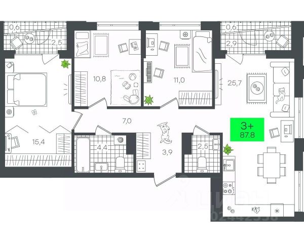 Гармоничная функциональная планировка, включает в себя просторную кухню-гостинную, 2 жилые комнаты, одна из которых с большой гардеробной с окном, свободную прихожую, где комфортно разместится шкаф-купе, совмещенный сан.узел и постирочная. Высокие потолки и полувитражные окна дополняют ощущение "воздуха" и простора.