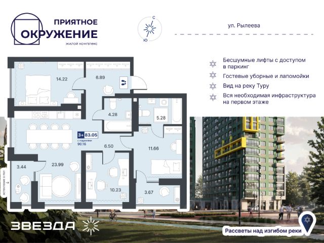 Квартира с кухней-гостиной и одной спальней в Октябрьском на Туре. Особенности планировки: балкон, предчистовая отделка. квартиры в нашей базе: ОКТ-08-6-6.11.5. Район Проект расположен на берегу реки, в одном из самых живописных и экологичных районов Тюмени. За последние годы облик района изменился. По соседству с индивидуальной застройкой выросли многоквартирные дома. При проектировании "Октябрьского на Туре" нашей приоритетной задачей стало сохранение природного ландшафта: мы постарались деликатно вписать в него современную архитектуру. Квартал удачно расположен с точки зрения дорожной инфраструктуры. На автомобиле путь до центра города составит 15 минут. Добраться до набережной и главных тюменских достопримечательностей можно и на общественном транспорте. В пешей доступности находится автобусная остановка. Проект По мастер-плану здесь будет восемь домов. Ядро застройки составляют замкнутые кварталы переменной этажности. Их высотность понижается по мере приближения к реке. На углах участка мы разместили башни-доминанты. Одной из достопримечательностей квартала станет парк на Туре — здесь появится зеленая зона протяженностью около 6 километров для пеших и велопрогулок. Смысловая ось квартала — широкая главная улица с высаженными вдоль неё высокими деревьями. Они создают тень и работают как шумо- и пылезащитные экраны. Это место сосредоточения основных пешеходных и транспортных потоков, на сторону которых мы ориентировали большинство коммерческих помещений. Отсюда жители могут свернуть на тихие соседские улицы и попасть на внутриквартальную площадь — ещё одну точку притяжения. #ZZd410