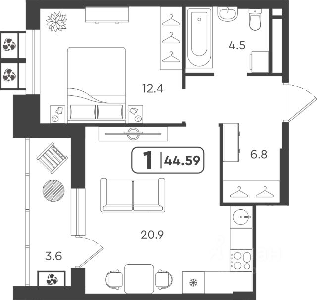 Продается 1-комн. квартира с предчистовой отделкой в Кварталы "На Минской" на 11 этаже. Общая площадь: 45 кв.м., жилая: 10.6 кв.м., площадь просторной кухни-гостиной: 19.1 кв.м. Все окна выходят на одну сторону. В квартире один балкон, один совмещенный санузел. Терраса представляет собой роскошную зону отдыха для проведение вечеров в кругу семьи и друзей или организация вечеринок. Высота потолков 2.7 м. Дом монолитный, многоподъездный, переменной этажности, от 7 до 16 этажей. Квартира находится в 1-й секции высотой 16 этажей в корпусе 1. На этаже 8 квартир. В подъезде 2 пассажирских лифта. Окончание строительства - 4 квартал 2026 года. Оформление сделки по договору долевого участия. Квартира с кухней-гостиной и одной спальней в кварталах "На Минской". Особенности планировки: предчистовая отделка. квартиры в нашей базе: МНС01-Ж1.11.7. В сердце города Кварталы "На Минской" находятся в самом центре. За десять минут можно дойти до площади 400-летия Тюмени и Большого Драматического театра, Тюменского индустриального и медицинского университетов, спортивного комплекса "Строймаш", ТРЦ "Гудвин" и "Премьер", Тюменского технопарка. Поблизости много детских садов, школ и поликлиник. Пространство разного опыта Создавая кварталы "На Минской" мы вдохновлялись Хакскими дворами в Берлине и улицей Давида Агмашенебели в Тбилиси. И первые и вторая — яркие разнообразные пространства, сформированные прогрессивными архитекторами и притягивающие городских интеллектуалов. Престижная недвижимость здесь соседствует с барами, ресторанами, креативными кластерами и бюро, дизайнерскими лавками. Полезные улицы Кварталы "На Минской" свяжет сеть променадов, автомобильных проездов и велодорожек. Уличный фронт проекта мы сформируем с помощью аллейной посадки деревьев. Они создадут тень для ресторанов и кафе на первых этажах, визуально отделят проезжую и пешеходную части, снизят объём пыли и уровень шума. Мы реализуем проект в районе с развитой базовой инфраструктурой. И поэтому тщательно подошли к программированию коммерции, посчитав, что её основная задача — "закрывать" более высокие потребности жителей. Здесь может появиться пекарня с вкусными круассанами, турагентство на случай, если захочется перезимовать в Сочи, массажный кабинет, ресторан, когда надоело есть дома и многое другое. #zsgBae