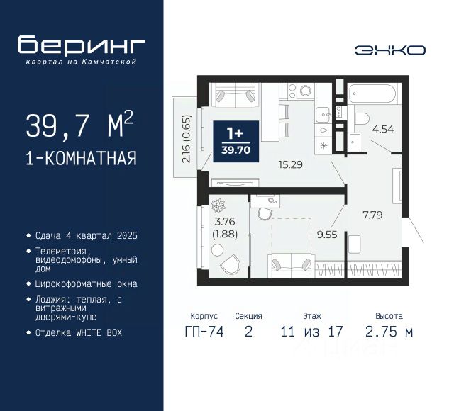 Продается 2-комн. квартира в ЖК "Беринг" на 11 этаже. Квартира без отделки, полностью готова к ремонту. Общая площадь: 72.33 кв.м., жилая: 28.57 кв.м., площадь просторной кухни-столовой: 23.87 кв.м. Квартира - распашонка, без проходных комнат, окна выходят на paзные стороны дома. В квартире один балкон, один совмещенный и один раздельный санузел. Высота потолков 2.75 м. Дом монолитный, многоподъездный, переменной этажности, от 9 до 22 этажей. Квартира находится в 73.5-й секции высотой 21 этаж в корпусе ГП-73. На этаже 6 квартир. В подъезде 1 пассажирский и 1 грузовой лифт. Окончание строительства - 4 квартал 2025 года. Оформление сделки по договору долевого участия. Подобно знаменитому исследователю, мы чувствуем себя первооткрывателями этой локации. Хотим показать новую суть места, сформировать для вас жизненный опыт, которого ещё не было. Беринг — район зелёного цвета. Беринг — район, который откроется вам с другой стороны. Впечатлит новым уровнем комфорта и качеством жизни. Беринг — открытие на карте города. Первый квартал расположен в районе Тура, в границах улиц: Камчатская Западносибирская Энтузиастов. Вокруг уже есть всё для того, чтобы ежедневная рутина была лишь частью жизни и не доставляла дискомфорта. Школы и детские сады, магазины и аптеки, поликлиника, места для семейного отдыха, пеших и велопрогулок, и даже рыбалки. Масштабное озеленение дворов — визитная карточка ЭНКО и ваш оазис спокойствия, чтобы отвлечься от повседневности. Раскидистые деревья, кустарники, травы и цветы — осталось остановиться, вдохнуть и расслабиться, глядя на эту природную красоту. Стилистика подъездов продолжает концепцию Беринга, вдохновлённого Камчаткой: сдержанный, но при этом впечатляющий дизайн соседствует с удобством и функциональностью. #z5FVc9