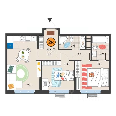 Ванная: 4 кв.м и раздельный санузел 2 кв.м — идеальное решение для удобства вашей семьи.