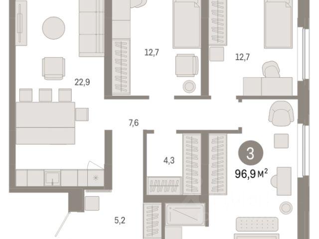 Успейте забронировать по акционной цене! Предложение ограничено! Стоимость квартиры указана со скидкой, ваша экономия составит 2,370,000 RUB. Квартира в счёт первоначального взноса по программе обмена. По всем вопросам обращайтесь в офис продаж, наши менеджеры вам все расскажут! Трехкомнатная квартира от застройщика с предчистовой отделкой в ЖК "Зарека" на 11 этаже. Общая площадь: 96.9 кв.м. Высота потолков 2.7 м. Дом монолитный, многоподъездный, переменной этажности, от 6 до 16 этажей. Квартира находится в 1-й секции высотой 16 этажей в корпусе 5-2. На этаже 8 квартир. В подъезде 1 пассажирский и 1 грузовой лифт. Окончание строительства - 4 квартал 2026 года. Оформление сделки по договору долевого участия. Квартира с кухней-гостиной и тремя спальнями в жилом районе "Зарека". Особенности планировки: гардеробная, предчистовая отделка, мастер-спальня, балкон. квартиры в нашей базе: ЗРК05.2-Ж1.11.8. Проект На планировочную структуру "Зареки" повлияла близость к автомобильному мосту Челюскинцев. Мы расположили жилые здания так, чтобы они постепенно удалялись от проезжей части. Приём напоминает лесенку: чем сильнее мост возвышается над участком застройки, тем дальше по отношению к нему стоят дома. Этот ступенчатый сдвиг позволил нам сформировать буфер между кварталами и оживлённой магистралью. Мы намерены высадить здесь высокие деревья и создать дополнительную защиту от дорожных шума и пыли. В границах нашего участка мы намерены разместить школу и два встроенных детских сада на 135 и 150 мест. Общественные пространства С севера на юг территорию будет пронизывать пешеходный бульвар. Мы мыслим это общественное пространство как главный центр притяжения. На нём будут сосредоточены основные детские игровые и спортивные зоны, места для встреч и спокойного отдыха. Он также сыграет роль мостика, ведущего к другим нашим проектам — "Европейскому кварталу" и "Дому у озера". Одна из базовых идей мастер-плана касается береговой линии. Сегодня озеленение этой территории носит стихииныи характер, а прямому доступу к Туре препятствует дамба. Мы хотим благоустроить пространства у воды и открыть их для людей. Архитекторы спроектировали систему многоярусных троп и спусков к реке, смотровые площадки и места для активного отдыха и пикников. #2sSCtd