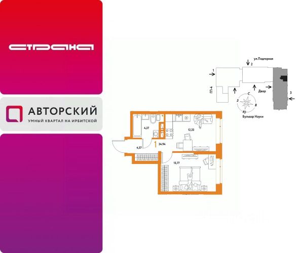 Новая квартира в ЖК "Авторский" напрямую от федерального застройщика "Страна Девелопмент". Продается 1комнатная квартира на 11 этаже от застройщика Страна Девелопмент. Площадь квартиры 34,94 кв. м. Жилой комплекс "Авторский" — квартал для авторов своей жизни от федерального застройщика "Страна Девелопмент" вблизи исторического центра — до Моста Влюблённых 4 минуты на авто, а ещё рядом ведущие вузы Тюмени. Преимущества • Тематический бульвар объединяет дома и закрытые дворы квартала в единую экосистему: зелень, перголы для отдыха, детские и спортивные площадки. По вечерам бульвар преображается: освещение создаёт уютную атмосферу. • Новый детский сад рядом, который появится в 2026 году прямо в одном из корпусов комплекса. В нём выделено 150 мест для малышей. • Во дворах нет машин, шума, выхлопных газов и посторонних людей. Всё пространство разделено на зоны по интересам и возрастам. Для детей — игровые площадки из эко-материалов и мягкая защита от падений. Для взрослых — зоны отдыха, воркаут-площадки и тропинки для неспешных прогулок. Отделка Квартиры сдаются с предчистовой отделкой: произведена разводка электричества и отопления, выполнена стяжка пола, стены выровнены "под маяк", установлены радиаторы. Способы покупки Сотрудники "Страна Девелопмент" будут сопровождать вас на каждом этапе сделки, помогут получить одобрение по ипотеке или снизить ежемесячный платеж. - ипотека - рассрочка - с использованием материнского капитала -100% оплата наличными