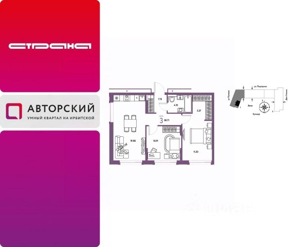 Новая квартира в ЖК "Авторский" напрямую от федерального застройщика "Страна Девелопмент". Продается 3комнатная квартира на 11 этаже от застройщика Страна Девелопмент. Площадь квартиры 64,34 кв. м. Жилой комплекс "Авторский" — квартал для авторов своей жизни от федерального застройщика "Страна Девелопмент" вблизи исторического центра — до Моста Влюблённых 4 минуты на авто, а ещё рядом ведущие вузы Тюмени. Преимущества • Тематический бульвар объединяет дома и закрытые дворы квартала в единую экосистему: зелень, перголы для отдыха, детские и спортивные площадки. По вечерам бульвар преображается: освещение создаёт уютную атмосферу. • Новый детский сад рядом, который появится в 2026 году прямо в одном из корпусов комплекса. В нём выделено 150 мест для малышей. • Во дворах нет машин, шума, выхлопных газов и посторонних людей. Всё пространство разделено на зоны по интересам и возрастам. Для детей — игровые площадки из эко-материалов и мягкая защита от падений. Для взрослых — зоны отдыха, воркаут-площадки и тропинки для неспешных прогулок. Отделка Квартиры сдаются с предчистовой отделкой: произведена разводка электричества и отопления, выполнена стяжка пола, стены выровнены "под маяк", установлены радиаторы. Способы покупки Сотрудники "Страна Девелопмент" будут сопровождать вас на каждом этапе сделки, помогут получить одобрение по ипотеке или снизить ежемесячный платеж. - ипотека - рассрочка - с использованием материнского капитала -100% оплата наличными