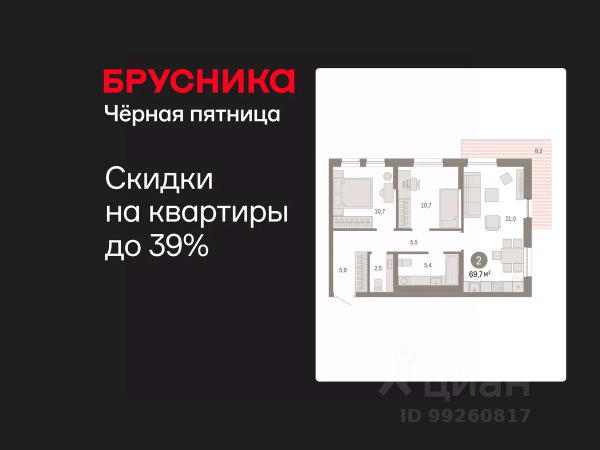 Квартира в счёт первоначального взноса по программе обмена. Звоните, мы вам все подробно расскажем! 2-комн. квартира с предчистовой отделкой в ЖК "Республики 205" на 11 этаже. Общая площадь: 72.39 кв.м., жилая: 23.4 кв.м., площадь просторной кухни-гостиной: 24.5 кв.м. Квартира угловая, очень светлая, естественная вентиляция при открытии окон. В квартире один совмещенный и один раздельный санузел. Высота потолков 2.7 м. Купить квартиру можно с помощью программ покупки от застройщика Брусника: - ипотека по эксклюзивной ставке с помощью в получении положительного кредитного решения через сервис ипотечный брокер; - квартиры в рассрочку без процентов от застройщика Брусника; - обмен квартиры на новую. Получить одобрение ипотеки или рассрочку, а также осуществить обмен квартир можно онлайн. Дом монолитный, многоподъездный, переменной этажности, от 7 до 16 этажей. Квартира находится в 3-й секции высотой 16 этажей в корпусе 2. На этаже 7 квартир. В подъезде 2 грузовых лифта. Начало строительства - 1 квартал 2024 года. Окончание строительства - 1 квартал 2026 года. Оформление сделки по договору долевого участия. Район Проект расположен в границах улиц Пермякова, Энергетиков, Воровского и Республики. До центра города — 10 минут на машине. Рядом — автомобильная развязка на пересечении улиц Пермякова и Республики. В шаговой доступности есть школы, детские сады, поликлиники, крупный торговый центр, автовокзал и несколько скверов. Проект "Республики 205" — это проект комплексного развития территории, уникальный по своему наполнению. Переосмысляя бывшую территорию завода медицинского оборудования, мы создадим новое место силы — микрорайон, насыщенный деловой, развлекательной, рекреационной, игровой, образовательной и медицинской инфраструктурой. До каждого полезного сервиса здесь можно будет дойти за 15 минут. Локальными центрами "Республики 205" будут общественные пространства — скверы, парки, бульвары и площади. В границах нашего участка мы намерены разместить школу, рассчитанную на 1550 учеников, два детских сада на 300 мест и встроенный детский сад на 100 мест. В одном из цехов бывшего завода расположится креативный кластер "Кузница". Он станет площадкой для нескольких институций — галереи, лектория, книжного магазина-библиотеки, кинобара и точек креативного pop-up-ритейла. Пешеходные бульвары внутри района соединят между собой улицу ресторанов, детские и спортивные площадки, событийную площадь и летний кинотеатр. Идентификатор квартиры по базе застройщика: РСП-02-3-3. #2smgsd
