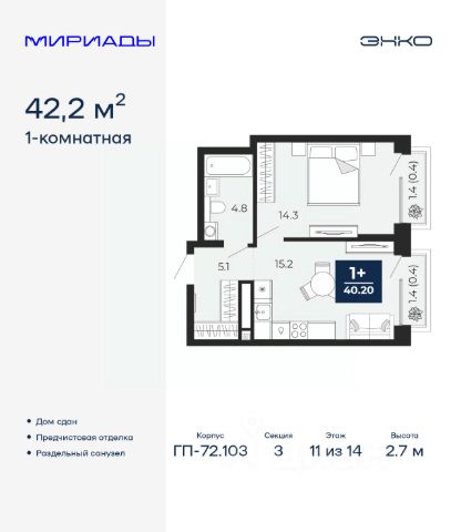 Торопитесь забронировать, пока действует скидка, срок акции ограничен! Стоимость квартиры указана со скидкой, ваша экономия составит 485,700 руб. Информация по телефону, мы вам все подробно расскажем.