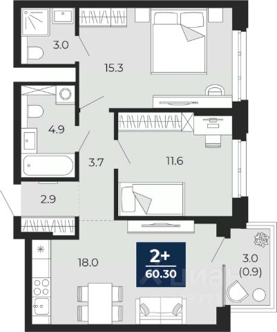 Продается 2-комн. квартира от застройщика с предчистовой отделкой в ЖК "Мириады" на 11 этаже. Общая площадь: 60.3 кв.м., жилая: 26.9 кв.м., площадь просторной кухни-столовой: 18 кв.м. Комнаты изолированные, все окна выходят на одну сторону. В квартире один балкон, два совмещенных санузла. Высота потолков 2.7 м. Дом монолитный, двухподъездный, переменной этажности, от 14 до 18 этажей. Квартира находится во 2-й секции высотой 14 этажей в корпусе ГП-72.104. На этаже 8 квартир. В подъезде 1 пассажирский и 1 грузовой лифт. Окончание строительства - 4 квартал 2025 года. Оформление сделки по договору долевого участия. Вселенная бесконечных историй. Ранее невиданный Тюмени масштаб: территория 240 гектаров и 1 650 000 м² застройки. Мириады это город масштабных перемен и больших возможностей. Город зеленых рощ и зеркальных озер. Город для работы, учебы и развлечений. Город для детей и их родителей. Город для всех и каждого. Проект расположен в районе Мыс рядом с ТРЦ "Тюмень Сити Молл" в границах улицы Тимофея Чаркова, Тобольского тракта и объездной дороги. Срок полного освоения территории - до 2034 года. #ZmTE5f