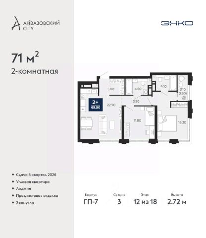 Успейте оформить бронирование по акционной цене, период предложения ограничен! Стоимость квартиры указана со скидкой, ваша экономия составит 500,000 руб. Информация по телефону, мы вам все подробно расскажем. Продается 2-комн. квартира с предчистовой отделкой в ЖК "Айвазовский City" на 12 этаже. Общая площадь: 71 кв.м., жилая: 24.4 кв.м., площадь просторной кухни-столовой: 32 кв.м. Угловая квартира, окна oбecпeчивaют paвнoмepнoe ocвeщeниe в тeчeниe дня. В квартире одна лоджия, два совмещенных санузла. Высота потолков 2.72 м. Дом монолитный, многоподъездный, переменной этажности, от 9 до 24 этажей. Квартира находится в 3-й секции высотой 18 этажей в корпусе ГП-7. На этаже 5 квартир. В подъезде 1 пассажирский и 2 грузовых лифта. Окончание строительства - 3 квартал 2026 года. Оформление сделки по договору долевого участия. Новый жилой район располагается в живописном месте на берегу Туры в центральной части города. Принципиально новое пространство для жизни в центре современного города для тех, чьи мечты сбываются, кто нацелен на постоянный рост, перемены к лучшему для себя и своих близких. Каждая деталь Айвазовский City вдохновляет и заряжает на новые свершения: авторская архитектура, сбалансированная продуманная инфраструктура, дизайнерские дворы со спортивными и детскими площадками, парковые зоны с фонтанами, водный канал, украшающий центральный прогулочный маршрут района и многое другое. В 2019 года проект стал лауреатом престижной премии Urban Awards 2019 в номинации "Лучший строящийся региональный жилой комплекс бизнес-класса". Главная особенность Айвазовский City - соседство разных архитектурных школ в рамках одного дома. Изысканная классика, выразительная эклектика и оригинальный модерн - жить в одном из таких домов настоящий повод для гордости. Айвазовский City это идеальное сочетание комфорта, технологий и развитой инфраструктуры. Вход в подъезд возможен с улицы и со двора. Отправляясь на работу или за покупками, жители могут выйти с внешней стороны дома, а для прогулки с ребенком со стороны двора. Экологически чистые материалы и энергосберегающие технологии, качественное освещение общественных зон, видеонаблюдение по всей территории жилого района (в том числе в подъездах, лифтах и в подземном паркинге), закрытые дворы с доступом только для жителей Айвазовский City. Часть домов в Айвазовский City будут оснащены подземным паркингом. Востребованный в нашем климатическом поясе формат хранения автомобилей защитит собственность владельца в любое время года. Аккредитация в банках: ПАО "Газпромбанк", "Сбербанк России", ОАО "Альфа-Банк", ПАО Банк "ВТБ", ПАО Банк "ФК Открытие" и других. #2ME1dC