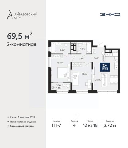 Продается трехкомнатная квартира с предчистовой отделкой в ЖК "Зарека" на 12 этаже. Общая площадь: 71.89 кв.м., жилая: 35.4 кв.м., площадь просторной кухни-гостиной: 21.4 кв.м. Квартира угловая, очень светлая, естественная вентиляция при открытии окон. В квартире одна лоджия, один совмещенный санузел. Высота потолков 2.7 м. Дом монолитный, многоподъездный, переменной этажности, от 7 до 16 этажей. Квартира находится в 5-й секции высотой 16 этажей в корпусе 2-1. На этаже 6 квартир. В подъезде 1 пассажирский и 1 грузовой лифт. Окончание строительства - 2 квартал 2029 года. Оформление сделки по договору долевого участия. Квартира с кухней-гостиной и тремя спальнями в жилом районе "Зарека". Особенности планировки: вид во двор, второй санузел, лоджия, предчистовая отделка, разнесённые спальни. О доме Замкнутый квартал высотой 8 этажей с 16-ти этажной башней-доминантой и двором на стилобате двухуровневого паркинга. Дом 2.1 сочетает в себе приемы классической и современной архитектуры. Выразительность достигается благодаря симметричной композиции фасада, чередование массинга идет за счет эркеров и подрезок. Фасады первых этажей выполнены из клинкерного кирпича, выше - штукатурные. Акцентом на фасаде являются металлические импосты окон, темно-серого цвета, который будет контрастировать со светлыми оттенками самого фасада. квартиры в нашей базе: ЗРК02.1-Ж5.12.1. Проект На планировочную структуру "Зареки" повлияла близость к автомобильному мосту Челюскинцев. Мы расположили жилые здания так, чтобы они постепенно удалялись от проезжей части. Приём напоминает лесенку: чем сильнее мост возвышается над участком застройки, тем дальше по отношению к нему стоят дома. Этот ступенчатый сдвиг позволил нам сформировать буфер между кварталами и оживлённой магистралью. Мы намерены высадить здесь высокие деревья и создать дополнительную защиту от дорожных шума и пыли. В границах нашего участка мы намерены разместить школу и два встроенных детских сада на 135 и 150 мест. Общественные пространства С севера на юг территорию будет пронизывать пешеходный бульвар. Мы мыслим это общественное пространство как главный центр притяжения. На нём будут сосредоточены основные детские игровые и спортивные зоны, места для встреч и спокойного отдыха. Он также сыграет роль мостика, ведущего к другим нашим проектам — "Европейскому кварталу" и "Дому у озера". Одна из базовых идей мастер-плана касается береговой линии. Сегодня озеленение этой территории носит стихииныи характер, а прямому доступу к Туре препятствует дамба. Мы хотим благоустроить пространства у воды и открыть их для людей. Архитекторы спроектировали систему многоярусных троп и спусков к реке, смотровые площадки и места для активного отдыха и пикников. #2ME5bg