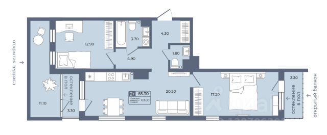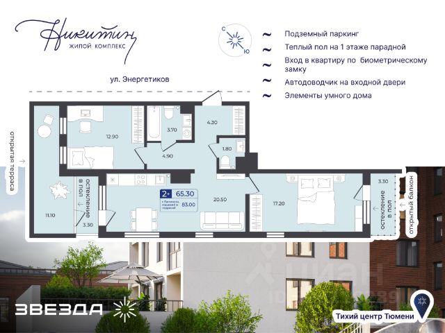 3-комн. квартира от застройщика с предчистовой отделкой в Кварталы "На Минской" на 12 этаже. Общая площадь: 116 кв.м., жилая: 39.7 кв.м., площадь просторной кухни-гостиной: 22.9 кв.м. Квартира угловая, очень светлая, естественная вентиляция при открытии окон. В квартире один балкон и одна лоджия, два совмещенных санузла. Терраса представляет собой роскошную зону отдыха, где вы на свой вкус можете создать атмосферу комфорта и уюта. Высота потолков 2.7 м. Дом монолитный, многоподъездный, переменной этажности, от 7 до 16 этажей. Квартира находится в 1-й секции высотой 16 этажей в корпусе 1. На этаже 8 квартир. В подъезде 2 пассажирских лифта. Окончание строительства - 4 квартал 2026 года. Оформление сделки по договору долевого участия. Квартира с кухней-гостиной и тремя спальнями в кварталах "На Минской". Особенности планировки: предчистовая отделка. квартиры в нашей базе: МНС01-Ж1.12.1. В сердце города Кварталы "На Минской" находятся в самом центре. За десять минут можно дойти до площади 400-летия Тюмени и Большого Драматического театра, Тюменского индустриального и медицинского университетов, спортивного комплекса "Строймаш", ТРЦ "Гудвин" и "Премьер", Тюменского технопарка. Поблизости много детских садов, школ и поликлиник. Пространство разного опыта Создавая кварталы "На Минской" мы вдохновлялись Хакскими дворами в Берлине и улицей Давида Агмашенебели в Тбилиси. И первые и вторая — яркие разнообразные пространства, сформированные прогрессивными архитекторами и притягивающие городских интеллектуалов. Престижная недвижимость здесь соседствует с барами, ресторанами, креативными кластерами и бюро, дизайнерскими лавками. Полезные улицы Кварталы "На Минской" свяжет сеть променадов, автомобильных проездов и велодорожек. Уличный фронт проекта мы сформируем с помощью аллейной посадки деревьев. Они создадут тень для ресторанов и кафе на первых этажах, визуально отделят проезжую и пешеходную части, снизят объём пыли и уровень шума. Мы реализуем проект в районе с развитой базовой инфраструктурой. И поэтому тщательно подошли к программированию коммерции, посчитав, что её основная задача — "закрывать" более высокие потребности жителей. Здесь может появиться пекарня с вкусными круассанами, турагентство на случай, если захочется перезимовать в Сочи, массажный кабинет, ресторан, когда надоело есть дома и многое другое. #zsszO9