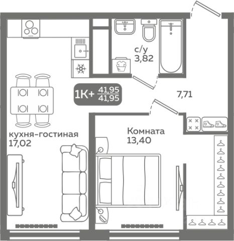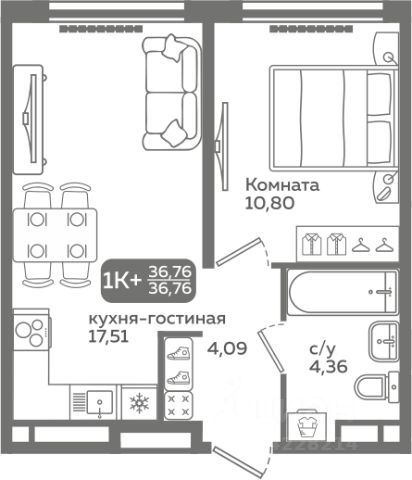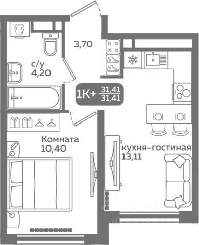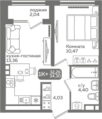 Просторная 1-комн. квартира-студия с предчистовой отделкой в ЖК "Прео" на 10 этаже. Общая площадь: 34.51 кв.м., площадь гостиной 23.97 кв.м., из которых 5 кв.м. выделено под кухонную зону. Все окна выходят на одну сторону. В квартире один балкон, один совмещенный санузел. Высота потолков 2.7 м.