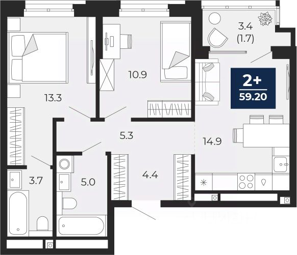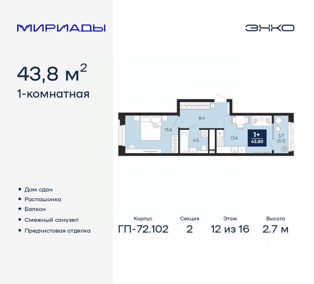 Продается 2-комн. квартира с предчистовой отделкой в ЖК "Мириады" на 12 этаже. Общая площадь: 54.8 кв.м., жилая: 22.5 кв.м., площадь просторной кухни-столовой: 17.2 кв.м. Комнаты изолированные, все окна выходят на одну сторону. В квартире один балкон, один совмещенный и один раздельный санузел. Высота потолков 2.7 м. Квартира находится в корпусе ГП-72.101. Дом монолитный, одноподъездный, высотой 25 этажей. На этаже 8 квартир. В подъезде 2 пассажирских и 1 грузовой лифт. Строительство завершено, дом сдан в 4 квартале 2025 года. Оформление сделки по договору купли-продажи. Вселенная бесконечных историй. Ранее невиданный Тюмени масштаб: территория 240 гектаров и 1 650 000 м² застройки. Мириады это город масштабных перемен и больших возможностей. Город зеленых рощ и зеркальных озер. Город для работы, учебы и развлечений. Город для детей и их родителей. Город для всех и каждого. Проект расположен в районе Мыс рядом с ТРЦ "Тюмень Сити Молл" в границах улицы Тимофея Чаркова, Тобольского тракта и объездной дороги. Срок полного освоения территории - до 2034 года. #ZT0ZtV
