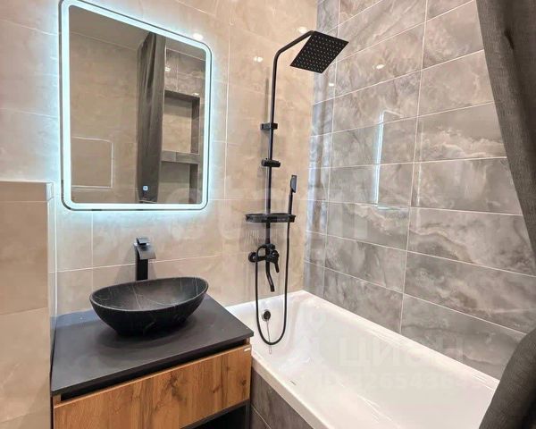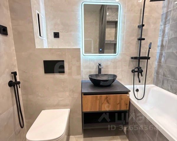 Санузел совмещен и укомплектован сантехникой. После продажи новому собственнику останется кухонный гарнитур, диван в комнате, встроенная гардеробная, остальное по договоренности.