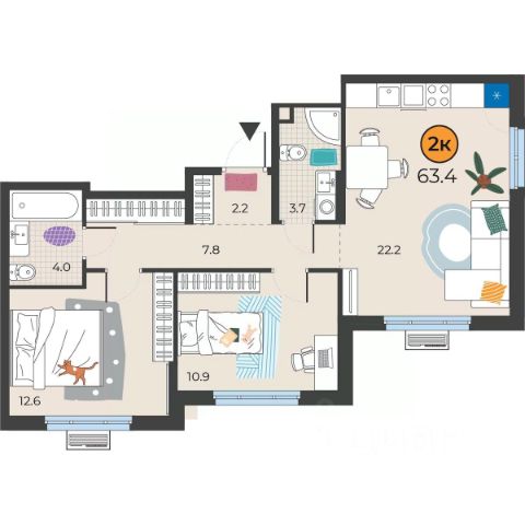 * Встроенная техника и шкафы остаются, мягкая мебель по договоренности.