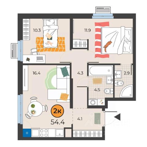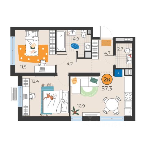 Планировка рациональная: выделина зона отдыха, кухонный блок, а также рабочая зона, что делает квартиру удобной для жизни.