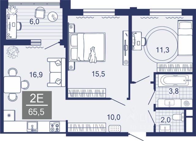 • ✅ Минимальная площадь: 21,4 м²