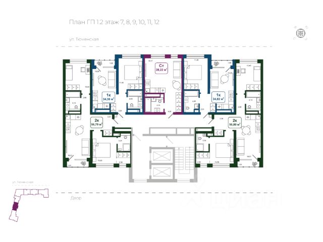 Квартира в ЖК Клевер Парк; 60,3 м²; 16/18 этаж, Тюмень, ул. Обдорская, 1.