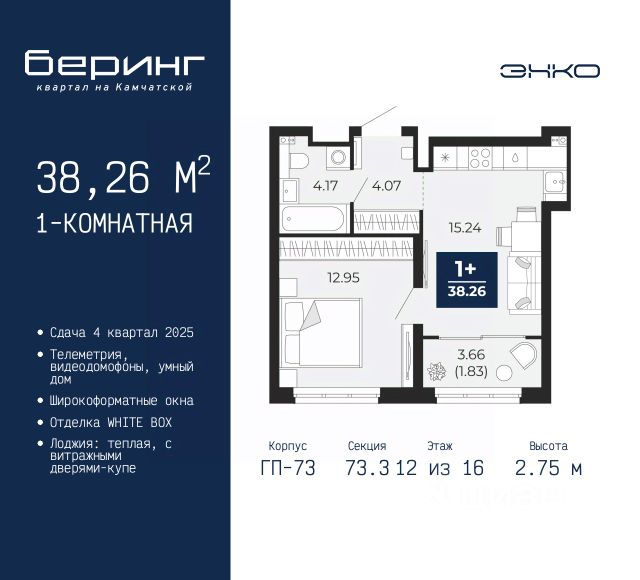 Продается трехкомнатная квартира в ЖК "Беринг" на 12 этаже. Квартира без отделки, после оформления собственности можно делать ремонт. Общая площадь: 74.63 кв.м., жилая: 34.75 кв.м., площадь просторной кухни-столовой: 16.25 кв.м. Комнаты изолированные, все окна выходят на одну сторону. В квартире одна лоджия, два совмещенных санузла. Высота потолков 2.75 м. Дом монолитный, многоподъездный, переменной этажности, от 9 до 21 этажей. Квартира находится в 4-й секции высотой 14 этажей в корпусе ГП-74. На этаже 7 квартир. В подъезде 1 пассажирский и 1 грузовой лифт. Окончание строительства - 4 квартал 2025 года. Оформление сделки по договору долевого участия. Подобно знаменитому исследователю, мы чувствуем себя первооткрывателями этой локации. Хотим показать новую суть места, сформировать для вас жизненный опыт, которого ещё не было. Беринг — район зелёного цвета. Беринг — район, который откроется вам с другой стороны. Впечатлит новым уровнем комфорта и качеством жизни. Беринг — открытие на карте города. Первый квартал расположен в районе Тура, в границах улиц: Камчатская Западносибирская Энтузиастов. Вокруг уже есть всё для того, чтобы ежедневная рутина была лишь частью жизни и не доставляла дискомфорта. Школы и детские сады, магазины и аптеки, поликлиника, места для семейного отдыха, пеших и велопрогулок, и даже рыбалки. Масштабное озеленение дворов — визитная карточка ЭНКО и ваш оазис спокойствия, чтобы отвлечься от повседневности. Раскидистые деревья, кустарники, травы и цветы — осталось остановиться, вдохнуть и расслабиться, глядя на эту природную красоту. Стилистика подъездов продолжает концепцию Беринга, вдохновлённого Камчаткой: сдержанный, но при этом впечатляющий дизайн соседствует с удобством и функциональностью. #235BsA