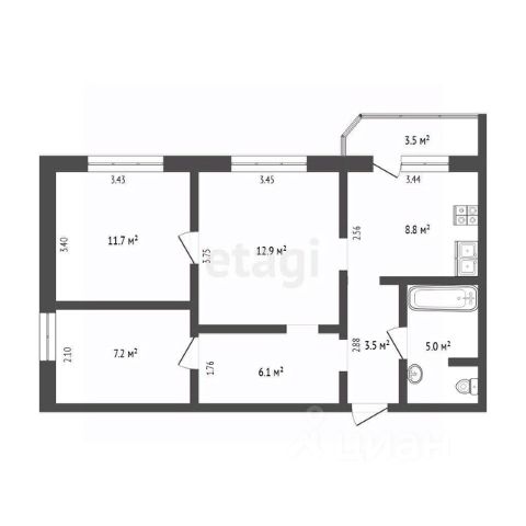 Просторная 2-комн. квартира с предчистовой отделкой в ЖК "Мотивы" на 12 этаже. Общая площадь: 68.85 кв.м., жилая: 25.71 кв.м., площадь просторной кухни-столовой: 16.05 кв.м. Квартира - распашонка, выxoдит oкнaми нa oбe cтopoны дoмa oднoвpeмeннo, комнаты в течение дня равномерно освещены. В квартире две лоджии, два совмещенных санузла. Высота потолков 2.7 м.