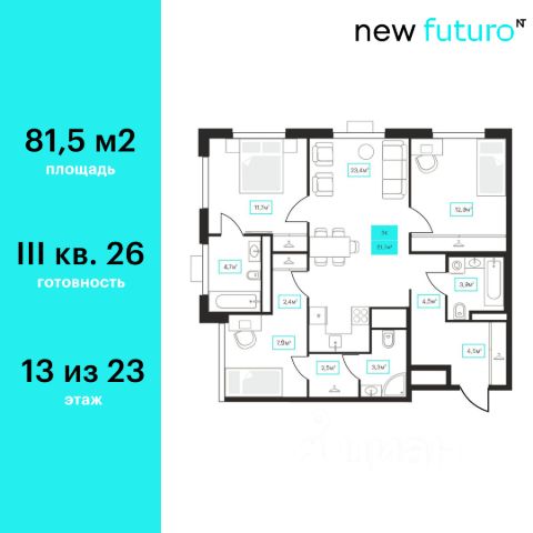 Продаётся 3-комнатная квартира в строящемся доме (ГП-1), срок сдачи: IV-кв. 2028, общей площадью 91.51 кв.м., на 13 этаже. Новый жилой комплекс "Континент" от Специализированного застройщика "Расцвет" расположен по адресу: г. Тюмень, по ул. Червишевский Тракт.