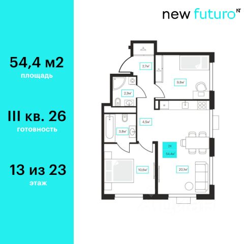 Продаётся 2-комнатная квартира в строящемся доме (ГП-1), срок сдачи: IV-кв. 2028, общей площадью 57.86 кв.м., на 13 этаже. Новый жилой комплекс "Континент" от Специализированного застройщика "Расцвет" расположен по адресу: г. Тюмень, по ул. Червишевский Тракт.