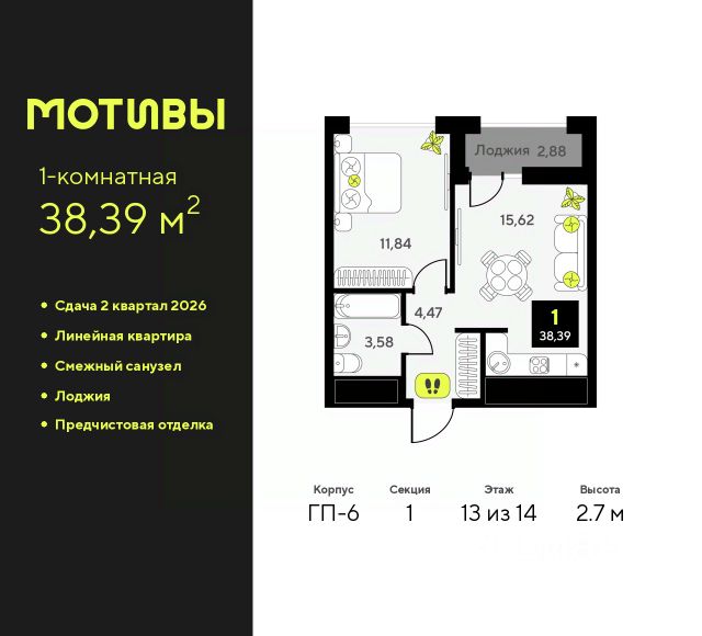 Продаётся квартира площадью 48.6 м2 в жилом комплексе "Айрис". Квартира находится на 13 этаже, жилая площадь квартиры 20.8 м2, площадь просторной кухни — 16.5 м2. Среди особенностей планировки — изолированные комнаты с окнами на одну сторону, 1 совмещённый санузел. Срок сдачи — III кв. 2027 "Айрис" — Смарт-квартал для активной и комфортной жизни "Айрис" расположен в новом экологически чистом районе Комарово Парк — локации без промышленного прошлого,в окружении трёх зелёных парков, до которых можно дойти за 10 минут. Здесь свежий воздух, природа и тишина сочетаются с городским комфортом. Рядом вся ключевая инфраструктура: ТРЦ "Колумб" и "Кристалл", Гимназия 4, Академия спорта, детские сады 60 и 95. Смарт-архитектура обеспечивает хорошие виды и естественное освещение. Разновысотная застройка формирует ощущение открытого пространства, а панорамные окна наполняют квартиры светом. Дворы без машин — безопасные игровые и спортивные зоны, зелёные пространства, места для отдыха и спорта. Большой выбор планировок — от студий до трёхкомнатных квартир, а также редкие форматы: террасы, зимние сады и сити-хаусы. Дополнительные удобства — кладовые на этажах, лаундж-парадные, два наземных паркинга. Продуманная транспортная доступность Благодаря продуманной транспортной доступности "Айрис" одинаково удобен и для автомобилистов, и для тех, кто пользуется общественным транспортом. Район остаётся тихим, при этом сохраняется связь с основными направлениями города: • 2025 минут до центра Тюмени • 67 минут до объездной дороги • 5 минут до Московского тракта Смарт-пространство для жизни без компромиссов "Айрис" предлагает продуманные пространства, которые поддерживают комфортный и активный образ жизни. На крышах паркингов размещены лайфстайл-зоны: площадки для тренировок, кинотеатр под открытым небом, зелёные террасы для йоги и отдыха — всё, что нужно для активной городской жизни рядом с домом. Максимум света и воздуха в каждой квартире Пространственные решения усиливают ощущение простора: • панорамные окна высотой 1,652,4 м; • витражные балконы и лоджии, расширяющие визуальные границы; • потолки от 2,72 м на типовых этажах до 4,62 м на первом. Многофункциональные крыши паркингов: новый уровень городской инфраструктуры Жители "Айрис" могут заниматься спортом, отдыхать и встречаться на свежем воздухе. — прямо на крышах паркингов. Здесь расположены: • воркаут-зона с тренажёрами и цифровыми программами тренировок — поддерживать форму можно рядом с домом; • кинотеатр под открытым небом, который летом становится центром вечерней жизни квартала; • зелёные террасы — тихие места для отдыха, чтения и встреч; • йога-терраса, где удобнее всего заниматься на рассвете и закате.