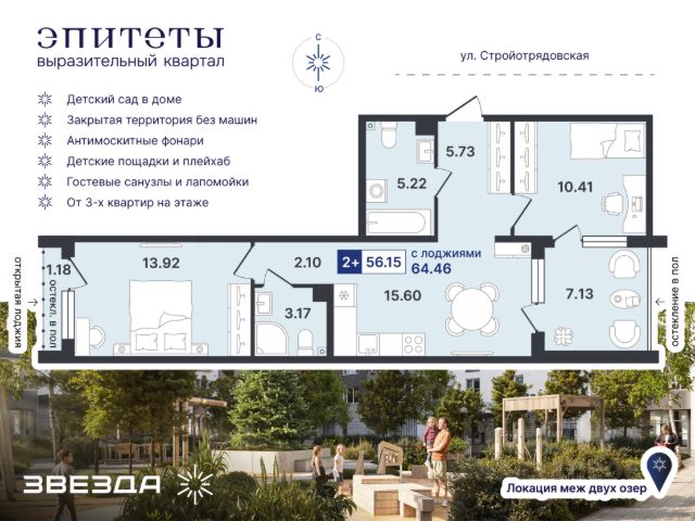 Квартира располагается в ГК "Чистые Пруды" от "Паритет девелопмент". Это флагманский проект компании в Тюмени. Расположение вдали от шумных улиц и оживленного центра создает ощущение жизни на природе и окружает тишиной и спокойствием. Есть вся необходимая социальная и коммерческая инфраструктура: магазины и сфера услуг на первых этажах. Школы, сады, поликлиника, парки в шаговой доступности. Квартал строится в районе Новой Лесобазы. Рядом выезд на объездную, что существенно экономит время. Поездка до центра города на автомобиле занимает 15-20 минут. Городские кварталы "Чистые Пруды" сформирован из домов переменной этажности и многоуровневых паркингов. Ввод 1 очереди строительства запланирован на II кв. 2028 года. Всё благоустройство квартала представлено двумя функциональными зонами: приватная внутри дворовая и общественная. Каждый закрытый двор имеет выход на единую променадную зону - бульвар. Концепция благоустройства основана на принципе модульности, что формирует основную идею приватности. Приватность проекта подчеркивает его особенный климат внутри. Модульное благоустройство позволит максимально эффективно использовать пространство двора и удовлетворить потребности различных категорий жителей. В квартирах базово выполнена улучшенная черновая отделка, которая включает в себя: выровненные стены, стяжка пола с шумоизоляцией, горизонтальная разводка отопления, установлены счетчики с телеметрией, окна с 5-камерным профилем и надежные входные двери. При желании можно добавить ремонт от застройщика и включить его в стоимость ипотеки, что позволит сэкономить на стройматериалах и переехать сразу после получения ключей. Характеристики квартиры: этаж - 13 количество комнат - 4 номер помещения - 131 площадь квартиры - 75,6 кв.мГармоничные пропорции и большие окна наполняют пространство светом, создавая уютную атмосферу. Умное зонирование позволяет удобно организовать как рабочую, так и жилую зоны, что особенно важно для современных жителей. Санузел спроектирован с учетом всех потребностей: здесь есть ванна и место для стиральной машины. Каждый метр квартиры используется с максимальной эффективностью, что делает эту планировку отличным выбором для тех, кто ценит комфорт и удобство.