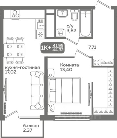 • ✅ Минимальная площадь: 19,7 м²