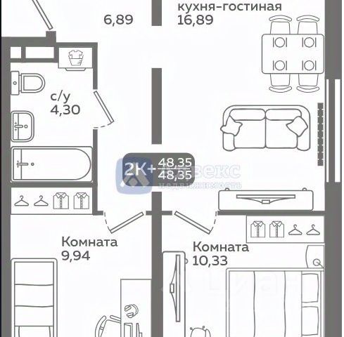 2-комн. квартира от застройщика с предчистовой отделкой в ЖК "Прео" на 2 этаже. Общая площадь: 66.33 кв.м., жилая: 30.88 кв.м., площадь просторной кухни-столовой: 17.49 кв.м. Комнаты изолированные, все окна выходят на одну сторону. В квартире один балкон, два совмещенных санузла. Высота потолков 2.7 м.