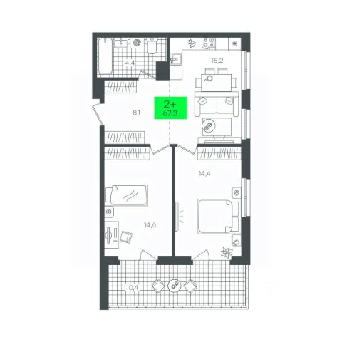 Продается двухкомнатная квартира от застройщика с предчистовой отделкой в ЖК "Прео" на 10 этаже. Общая площадь: 66.5 кв.м. Высота потолков 2.7 м.