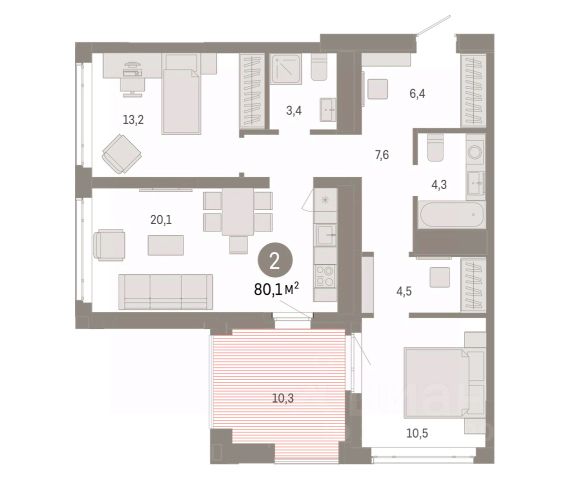 Спешите забронировать по акционной цене, предложение ограничено! Стоимость квартиры указана со скидкой, ваша экономия составит 822,021 руб. Информация по телефону, наши менеджеры вам все расскажут. Просторная двухкомнатная квартира с предчистовой отделкой в ЖК "Мириады" на 13 этаже. Общая площадь: 59.3 кв.м., жилая: 23.5 кв.м., площадь просторной кухни-столовой: 16.9 кв.м. Комнаты изолированные, все окна выходят на одну сторону. В квартире два балкона, один совмещенный и один раздельный санузел. Высота потолков 2.7 м. Дом монолитный, двухподъездный, переменной этажности, от 14 до 18 этажей. Квартира находится в 1-й секции высотой 18 этажей в корпусе ГП-72.104. На этаже 6 квартир. В подъезде 1 пассажирский и 1 грузовой лифт. Строительство окончено, дом сдан в 4 квартале 2025 года. Оформление сделки по договору купли-продажи. Вселенная бесконечных историй. Ранее невиданный Тюмени масштаб: территория 240 гектаров и 1 650 000 м² застройки. Мириады это город масштабных перемен и больших возможностей. Город зеленых рощ и зеркальных озер. Город для работы, учебы и развлечений. Город для детей и их родителей. Город для всех и каждого. Проект расположен в районе Мыс рядом с ТРЦ "Тюмень Сити Молл" в границах улицы Тимофея Чаркова, Тобольского тракта и объездной дороги. Срок полного освоения территории - до 2034 года. #zmDFDF