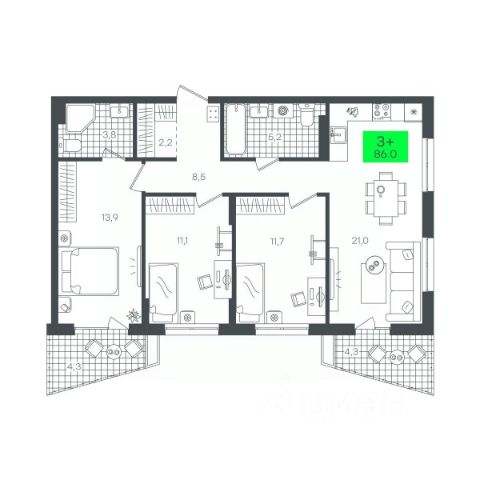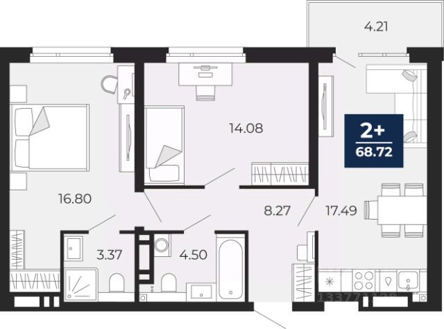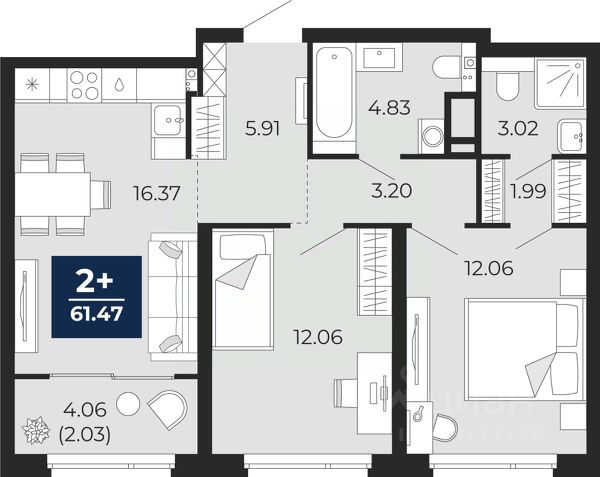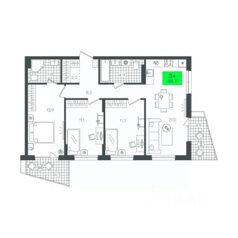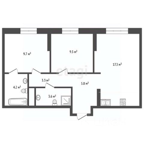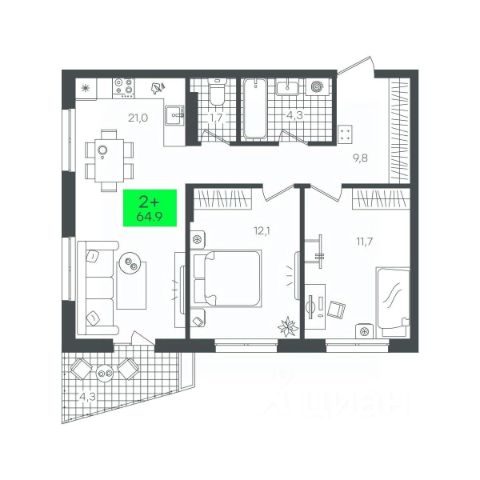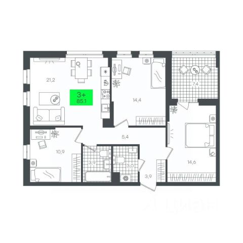 3-комн. квартира с предчистовой отделкой в ЖК "Прео" на 9 этаже. Общая площадь: 74.98 кв.м. Высота потолков 2.7 м.