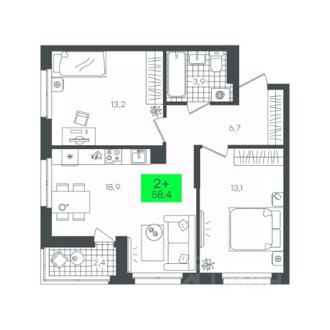 2-комн. квартира с предчистовой отделкой в ЖК "Прео" на 11 этаже. Общая площадь: 66.56 кв.м. Высота потолков 2.7 м.