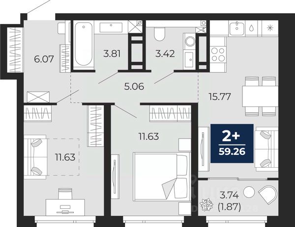 Дом монолитный, трехподъездный, переменной этажности, от 14 до 22 этажей. Квартира находится в 3-й секции высотой 14 этажей в корпусе 208. На этаже 6 квартир. В подъезде 1 пассажирский и 1 грузовой лифт. Окончание строительства - 1 квартал 2026 года. Оформление сделки по договору долевого участия.