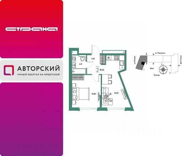 Новая квартира в ЖК "Авторский" напрямую от федерального застройщика "Страна Девелопмент". Продается 2комнатная квартира на 13 этаже от застройщика Страна Девелопмент. Площадь квартиры 48,42 кв. м. Жилой комплекс "Авторский" — квартал для авторов своей жизни от федерального застройщика "Страна Девелопмент" вблизи исторического центра — до Моста Влюблённых 4 минуты на авто, а ещё рядом ведущие вузы Тюмени. Преимущества • Тематический бульвар объединяет дома и закрытые дворы квартала в единую экосистему: зелень, перголы для отдыха, детские и спортивные площадки. По вечерам бульвар преображается: освещение создаёт уютную атмосферу. • Новый детский сад рядом, который появится в 2026 году прямо в одном из корпусов комплекса. В нём выделено 150 мест для малышей. • Во дворах нет машин, шума, выхлопных газов и посторонних людей. Всё пространство разделено на зоны по интересам и возрастам. Для детей — игровые площадки из эко-материалов и мягкая защита от падений. Для взрослых — зоны отдыха, воркаут-площадки и тропинки для неспешных прогулок. Отделка Квартиры сдаются с предчистовой отделкой: произведена разводка электричества и отопления, выполнена стяжка пола, стены выровнены "под маяк", установлены радиаторы. Способы покупки Сотрудники "Страна Девелопмент" будут сопровождать вас на каждом этапе сделки, помогут получить одобрение по ипотеке или снизить ежемесячный платеж. - ипотека - рассрочка - с использованием материнского капитала -100% оплата наличными