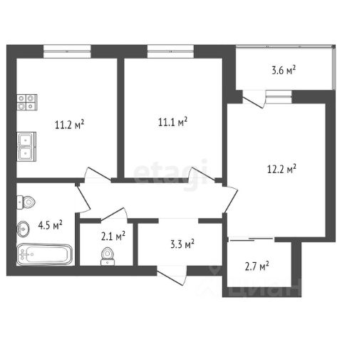 Идеальная гармоничная планировка - одна из лучших в ЖК, включает в себя: комфортную кухню-гостиную столовую 20 кв.м. с выходом на витражную лоджию 5 кв.м., большую спальню 13,1 кв.м., просторный сан.узел - более 4,3 кв.м.