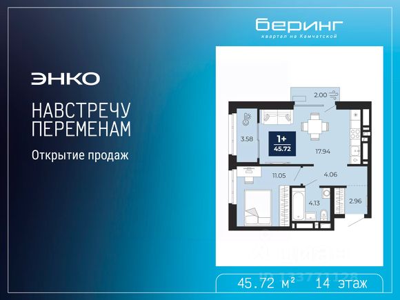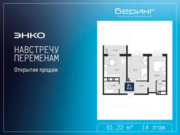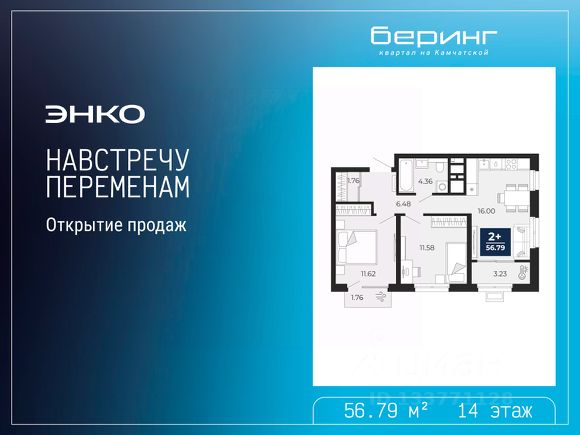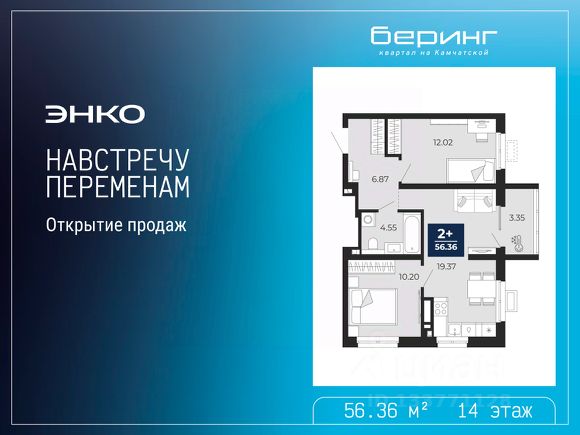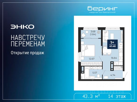 Успейте оформить бронирование, пока действует скидка, предложение ограничено! Стоимость квартиры указана со скидкой, ваша экономия составит 834,234 руб. Информация по телефону, мы вам все подробно расскажем. Продается двухкомнатная квартира от застройщика с предчистовой отделкой в ЖК "Беринг" на 14 этаже. Общая площадь: 58.17 кв.м., жилая: 22.34 кв.м., площадь просторной кухни-столовой: 16.87 кв.м. Квартира угловая, окна oбecпeчивaют paвнoмepнoe ocвeщeниe в тeчeниe дня. В квартире одна лоджия, один совмещенный и один раздельный санузел. Высота потолков 2.75 м. Дом монолитный, многоподъездный, переменной этажности, от 6 до 22 этажей. Квартира находится в 1-й секции высотой 22 этажа в корпусе ГП-73. На этаже 5 квартир. В подъезде 1 пассажирский и 1 грузовой лифт. В настоящее время строительство окончено, дом сдан в 1 квартале 2026 года. Оформление сделки по договору купли-продажи. Подобно знаменитому исследователю, мы чувствуем себя первооткрывателями этой локации. Хотим показать новую суть места, сформировать для вас жизненный опыт, которого ещё не было. Беринг — район зелёного цвета. Беринг — район, который откроется вам с другой стороны. Впечатлит новым уровнем комфорта и качеством жизни. Беринг — открытие на карте города. Первый квартал расположен в районе Тура, в границах улиц: Камчатская Западносибирская Энтузиастов. Вокруг уже есть всё для того, чтобы ежедневная рутина была лишь частью жизни и не доставляла дискомфорта. Школы и детские сады, магазины и аптеки, поликлиника, места для семейного отдыха, пеших и велопрогулок, и даже рыбалки. Масштабное озеленение дворов — визитная карточка ЭНКО и ваш оазис спокойствия, чтобы отвлечься от повседневности. Раскидистые деревья, кустарники, травы и цветы — осталось остановиться, вдохнуть и расслабиться, глядя на эту природную красоту. Стилистика подъездов продолжает концепцию Беринга, вдохновлённого Камчаткой: сдержанный, но при этом впечатляющий дизайн соседствует с удобством и функциональностью.