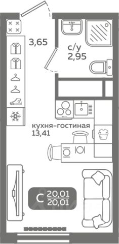 • ✅ Минимальная площадь: 19,7 м²