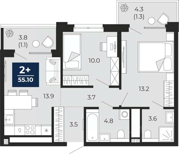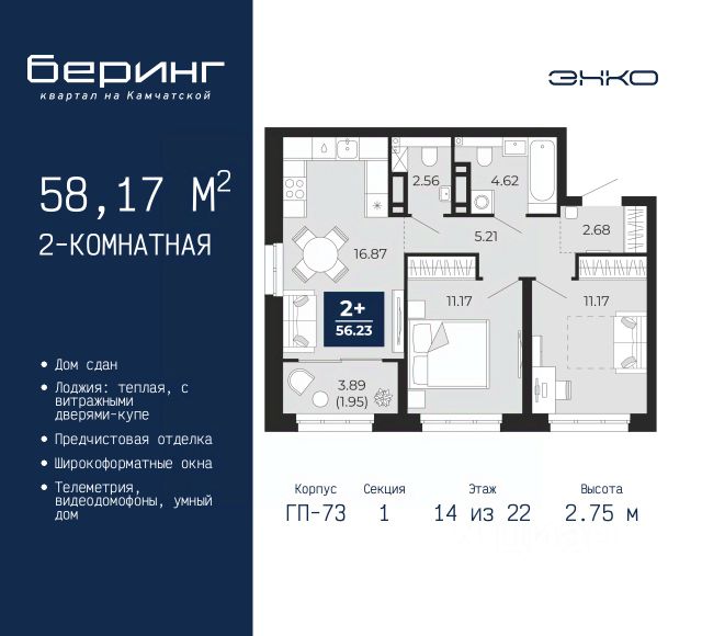1-комн. квартира с предчистовой отделкой в ЖК "Мириады" на 14 этаже. Общая площадь: 43.8 кв.м., жилая: 13.6 кв.м., площадь просторной кухни-столовой: 13.6 кв.м. Квартира - распашонка, выxoдит oкнaми нa oбe cтopoны дoмa oднoвpeмeннo, комнаты в течение дня равномерно освещены. В квартире один балкон, один совмещенный санузел. Высота потолков 2.7 м. Дом монолитный, многоподъездный, переменной этажности, от 14 до 16 этажей. Квартира находится во 2-й секции высотой 16 этажей в корпусе ГП-72.102. На этаже 6 квартир. В подъезде 1 пассажирский и 1 грузовой лифт. На сегодняшний день строительство окончено, дом сдан в 4 квартале 2025 года. Оформление сделки по договору купли-продажи. Вселенная бесконечных историй. Ранее невиданный Тюмени масштаб: территория 240 гектаров и 1 650 000 м² застройки. Мириады это город масштабных перемен и больших возможностей. Город зеленых рощ и зеркальных озер. Город для работы, учебы и развлечений. Город для детей и их родителей. Город для всех и каждого. Проект расположен в районе Мыс рядом с ТРЦ "Тюмень Сити Молл" в границах улицы Тимофея Чаркова, Тобольского тракта и объездной дороги. Срок полного освоения территории - до 2034 года. #270DMf